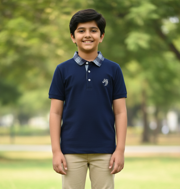 Boys Blue Solid Polo Mercerised Cotton T-shirt