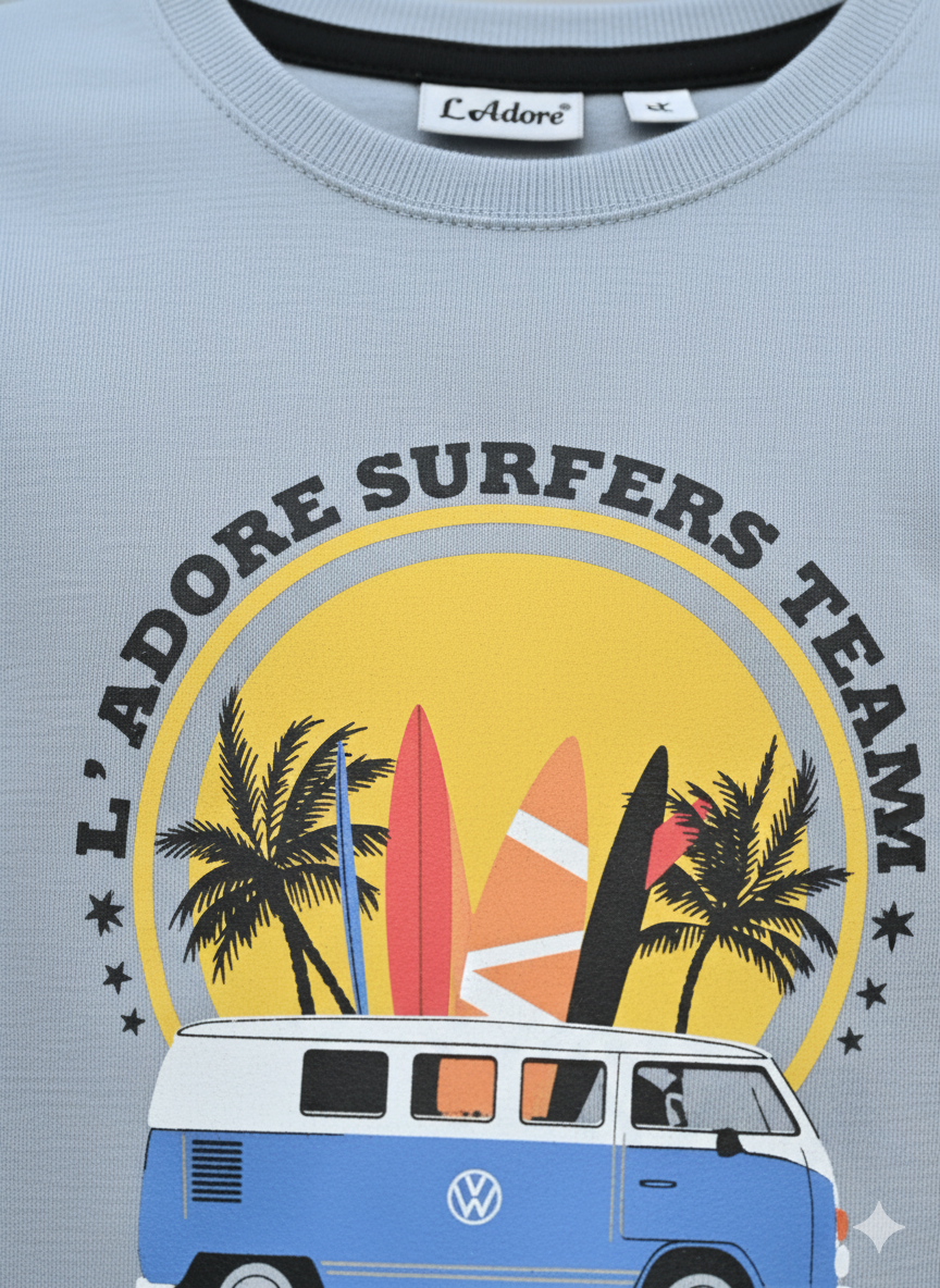 Grey Surfer Printed Round Neck Cotton T-shirt