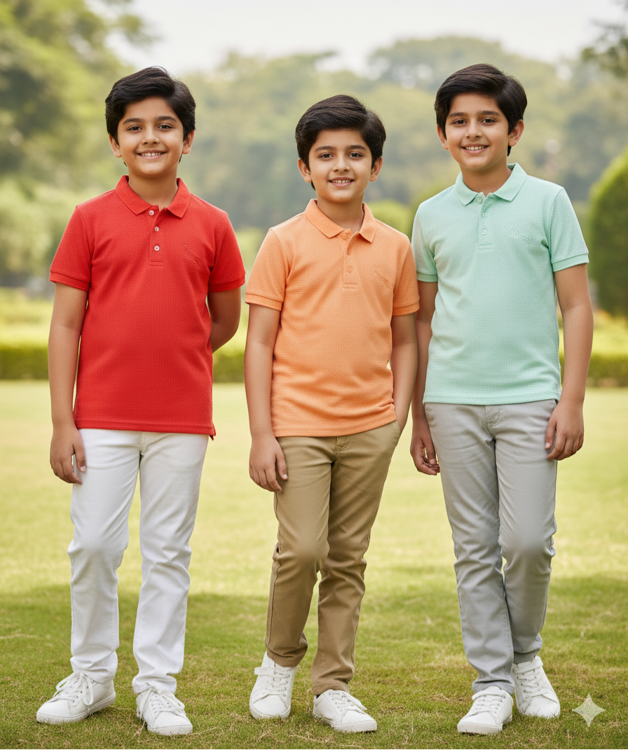 Kids Combo Pack of 3 100% Cotton Polo T-Shirts (Age 2-13 Years)