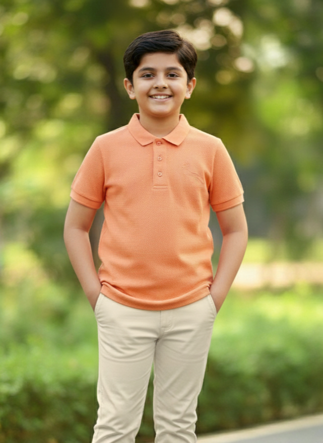 Kids Peach Half Sleeves Cotton Polo T-shirt