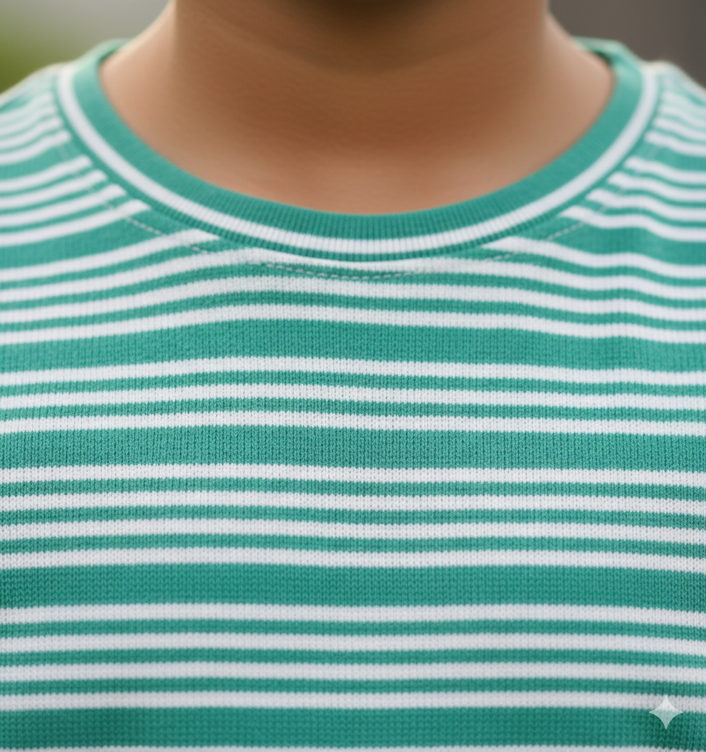 The first t-shirt showcases eye-catching aqua green stripes, adding a fun and stylish flair to any outfit.