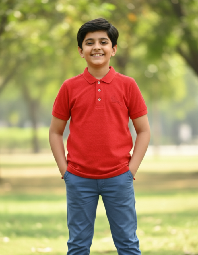 Kids Red Half Sleeves Cotton Polo T-shirt