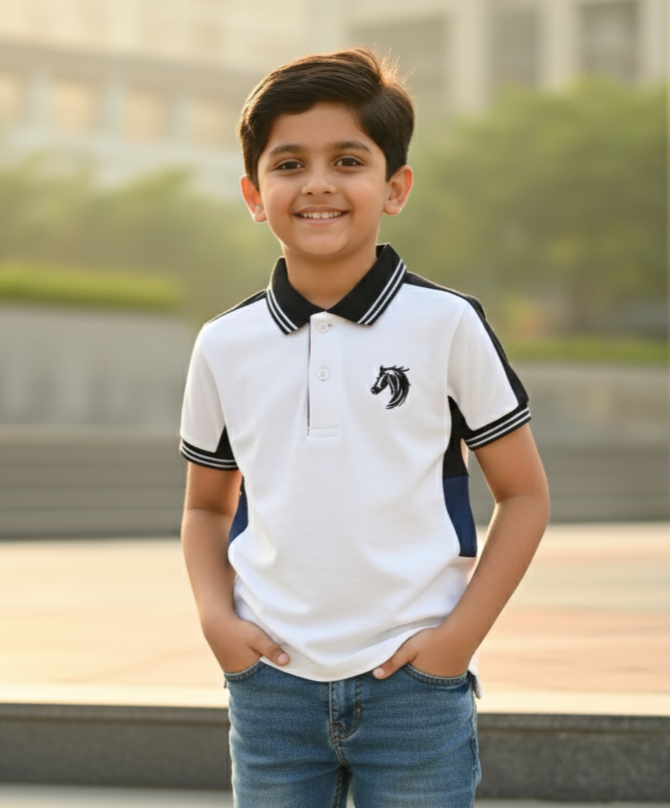 - This smart white Polo T-shirt will make your kid stand out whereever he/she goes.